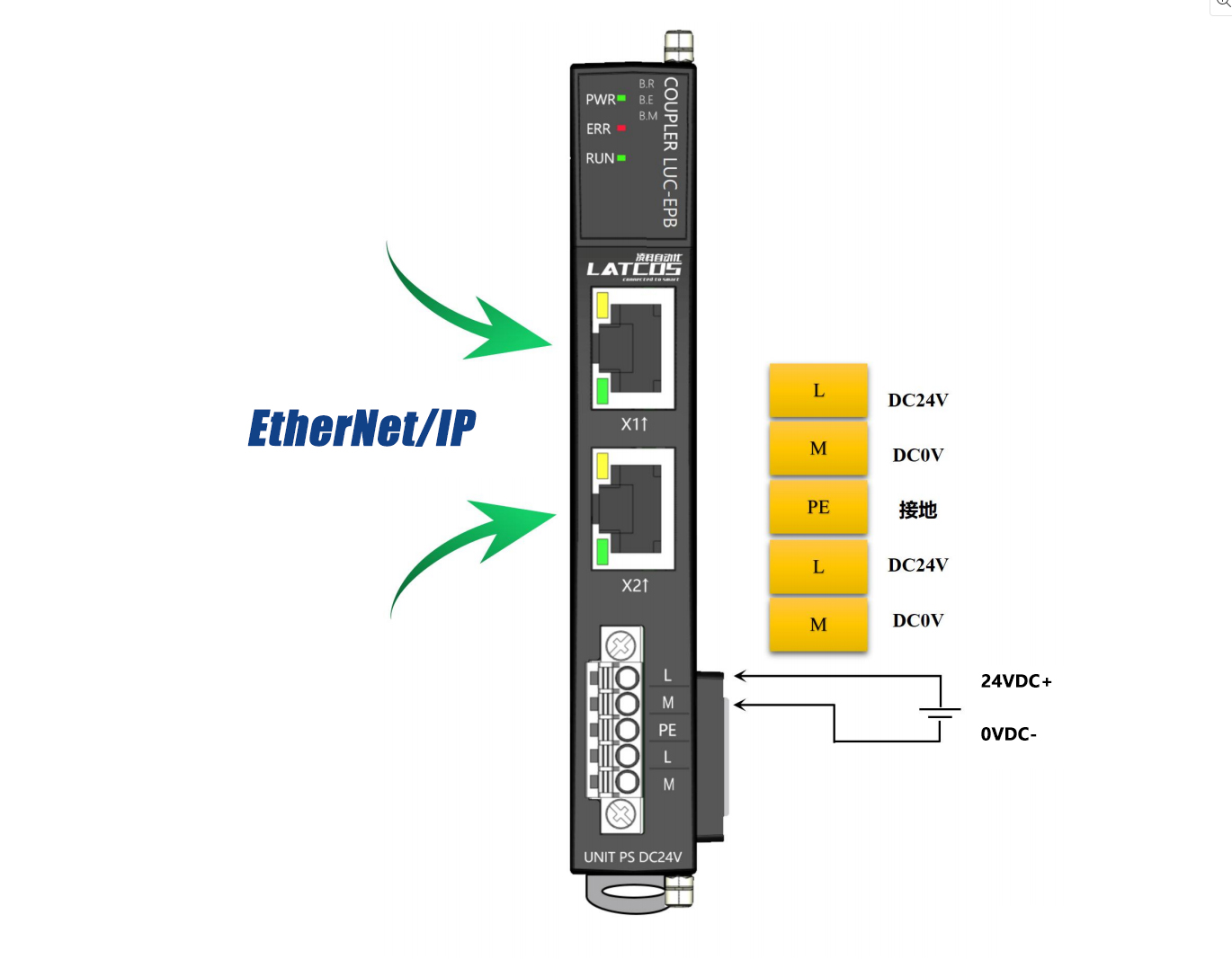 薄片型多功能分布式I/O,ETHERNET/IP耦合器,2xRJ45,可級聯,可擴展32個模塊,24VDC