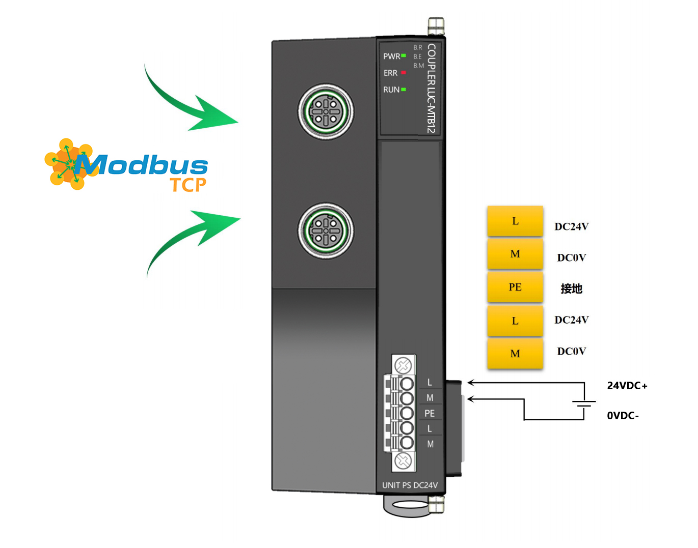 薄片型多功能分布式I/O,MODBUS TCP耦合器,2xM12,可級聯,可擴展32個模塊,24VDC