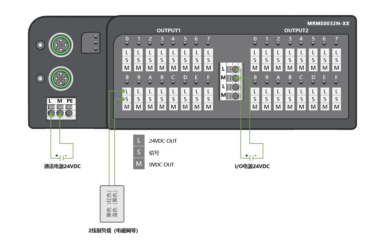 面板式快接線分布式I/O,PROFINET通訊,2xM12,可級聯;數字量32出 NPN,24VDC,0.5A,歐式彈簧端子;導軌安裝&打孔安裝(下單時需備注)