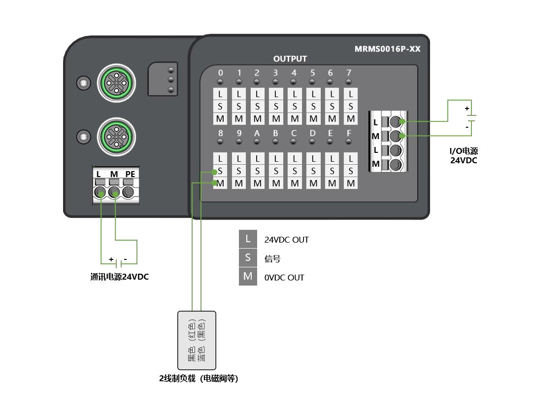 面板式快接線分布式I/O,PROFINET通訊,2xM12,可級聯;數字量16出 PNP,24VDC,0.5A,歐式彈簧端子;導軌安裝&打孔安裝(下單時需備注)