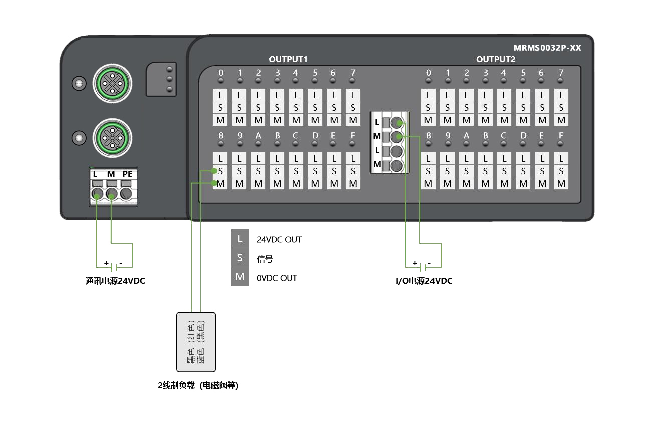 面板式快接線分布式I/O,EtherNet/IP通訊,2xM12,可級(jí)聯(lián);數(shù)字量32出 PNP,24VDC,0.5A,歐式彈簧端子;導(dǎo)軌安裝&打孔安裝(下單時(shí)需備注)