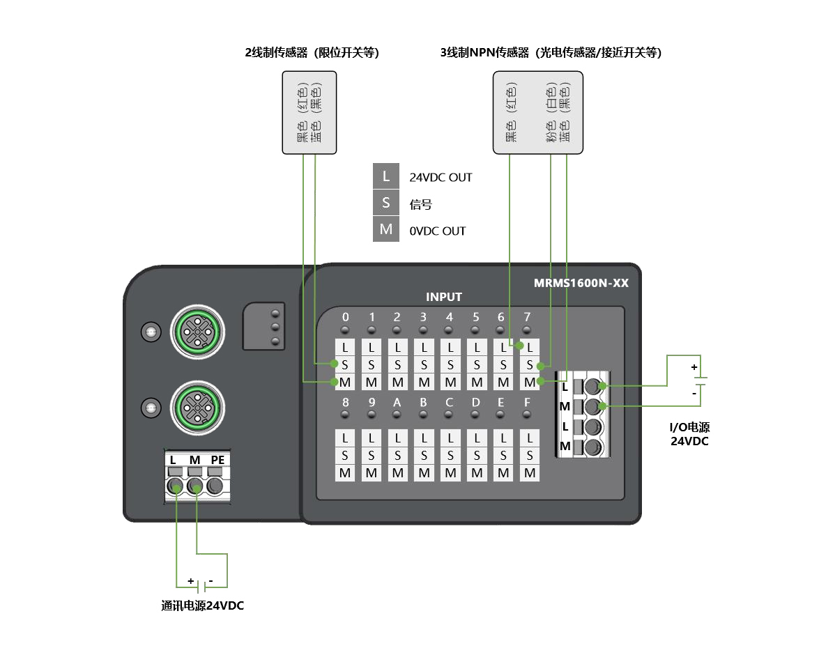 面板式快接線分布式I/O,EtherNet/IP通訊,2xM12,可級(jí)聯(lián);數(shù)字量16入 NPN,24VDC,歐式彈簧端子;導(dǎo)軌安裝&打孔安裝(下單時(shí)需備注)