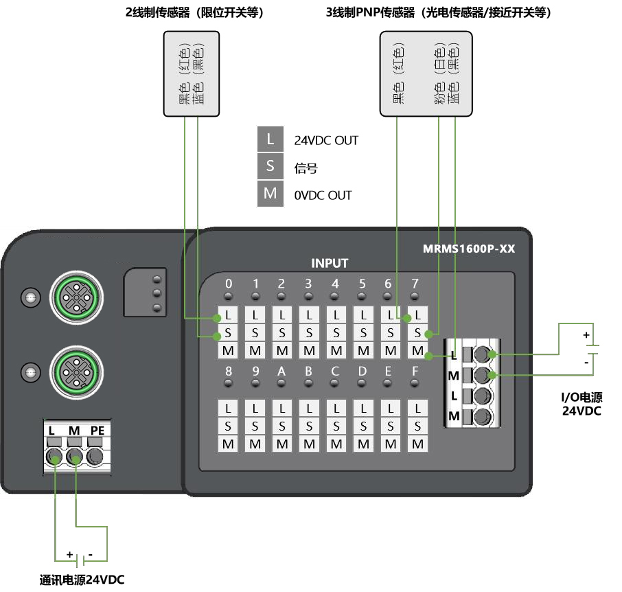 面板式快接線分布式I/O,EtherNet/IP通訊,2xM12,可級聯(lián);數(shù)字量16入 PNP,24VDC,歐式彈簧端子;導軌安裝&打孔安裝(下單時需備注)