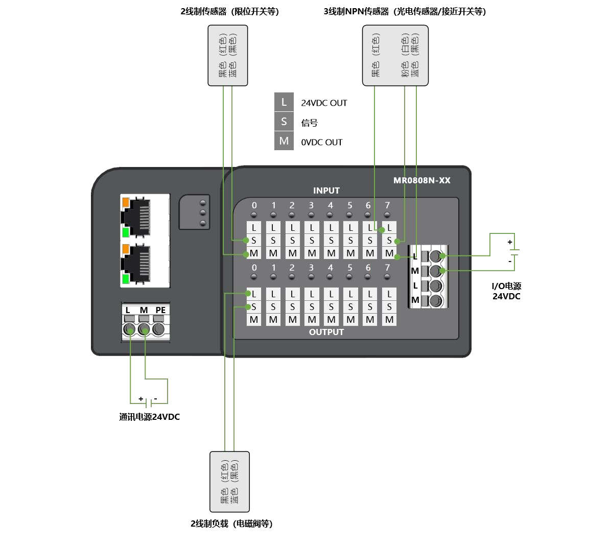電源接口:模塊供電:3P歐式彈簧端子;負(fù)載供電:4P歐式彈簧端子